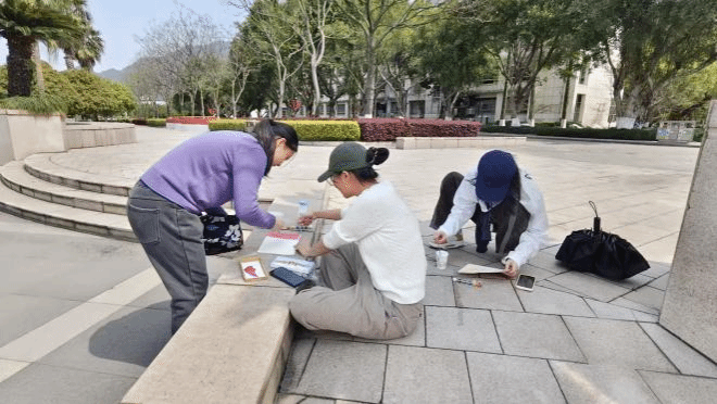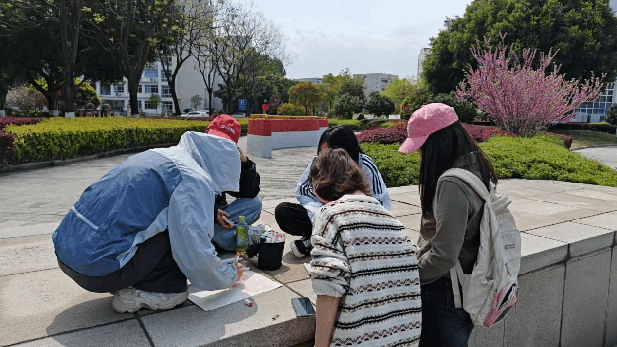 春风拂过鲜红的旗角,暖阳轻抚专注的脸庞。以白卡纸为卷,以斑斓色彩为墨,在尺幅天地间勾勒五星轮廓,于笔尖流淌爱国深情,让清明时节的校园跃动着青春与信仰交织的韵律。