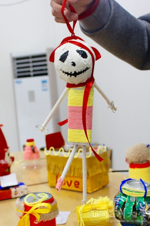 2点整,活动准时在美院2B3001展开。首先由本次活动的“艺家人”青协志愿者负责人上台致活动开讲词,随后就是志愿者的创作时间。作为6163银河.net163.am的学生,动手能力自然是十分出色的。活动室里,志愿者领了物品后手上的活动就一直没有停歇,创作了一个又一个可爱的冬日小饰品。一件件看似毫无用处的废旧物品经过志愿者的改造变成了令人爱不释手的精美饰品,有的志愿者利用废旧的饮料瓶做了圣诞老人,有的做了风铃,有的做了小房子……志愿者们出色的创造力,很好的展现了美院学子的风采。
