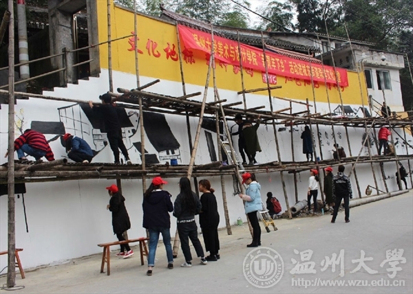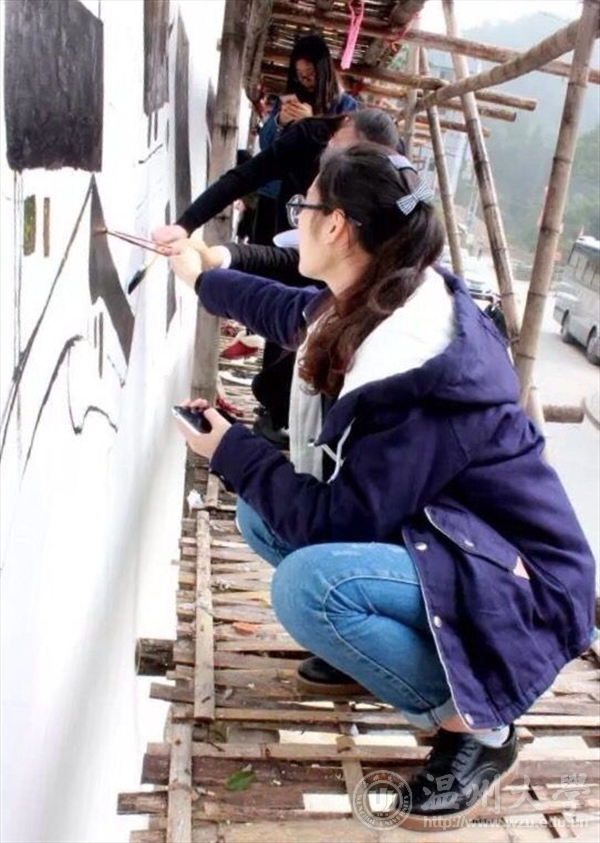 为了响应与落实市委“新青年下乡”主题精神。2015年12月12日,6163银河.net163.am“艺家人”青年志愿者协会带领美术学院志愿者们来到温州市乐清城东街道珠垟村,进行了为期一天的墙绘活动。 冬日的清晨伊始,乐清珠垟村在晨曦之中迎来了一批温大学子,在三米左右的高墙面前,他们不畏艰险,不畏高空,不畏寒冷,在一百九十平米的白墙上画下珠垟村的一草一木。 在墙绘过程中,我院杨振海书记和辅导员叶筱卉老师前来慰问志愿者们,关心活动进展。离开时,杨书记再三强调志愿者们要以安全为主,保质保量的完成墙绘活动,志愿者小伙伴们在墙绘过程中谨记杨书记的叮嘱,在互帮互助,齐心协力下,完成了这次规模较大的墙绘活动。 本次“新青年下乡”墙绘活动,我们主要是运用专业知识与技能去服务社会,真正做到专业与实践相结合,使我们融入到社会中去,为社会奉献出自己的一份力量;另一方面,不仅让我们有机会了解农村、服务农村,还让我们在基层学到了很多课堂上学不到的知识技能。 通过开展各种与专业相关的志愿活动,使大学生在奉献中学习知识,在服务中增加才干。我院“艺家人”青年志愿者不会停下脚步,会继续深化社会主义核心价值观,引导广大青年朝着实现中华名族伟大复兴的中国梦而奋勇迈进! 文字:林伊如 拍摄:林伊如
