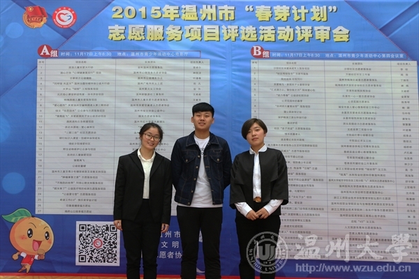 2015年11月17日,我院“艺家人”青年志愿者协会前往温州市青少年活动中心参加“春芽计划”志愿服务项目评选活动,本次活动由共青团温州市委、温州市志愿者协会联合主办。据悉,参与此次志愿服务项目评选活动的有57个志愿服务团队,其中27个社会志愿服务团队和32个高校志愿服务队。在评选过程中,我院“艺家人”青年志愿者协会从项目产生的背景、项目的实施途径以及项目的成效影响向各位评委老师进行展示。十年来,“艺家人”青年志愿者协会在校团委、院党团的领导下,本着“立足专业特色,爱心融入创作,艺术奉献社会”的志愿精神,倡导“在奉献中学习,在服务中成长”的服务理念,结合专业特色,通过微媒招募成员、强化志愿培训、建立服务基地、定点定期服务等方式,关注社会弱势群体需求与地方社会发展,积极开展爱心创作“艺”卖、城市文明墙绘、爱心支教服务等志愿活动,尽己所能进行帮扶与奉献,为社会传递了正向能量,树立了新时期大学生良好的文明形象,深得社区居民、学校师生、单位领导的一致肯定与好评,受到校内外媒体的广泛关注。通过此次活动,进一步规范提升幸福志愿站整体运营情况,有效发挥典型示范效应,使其志愿服务队伍更加专业化、特色化、系统化。 图1:美院“艺家人”青年志愿者协会代表人(从左至右依次为:赵丽静、杨猛、孙彦鑫)图2:“艺家人”青年志愿者协会代表人做团队介绍、项目展示图3:评审现场 文:杨猛 摄影:孙彦鑫
