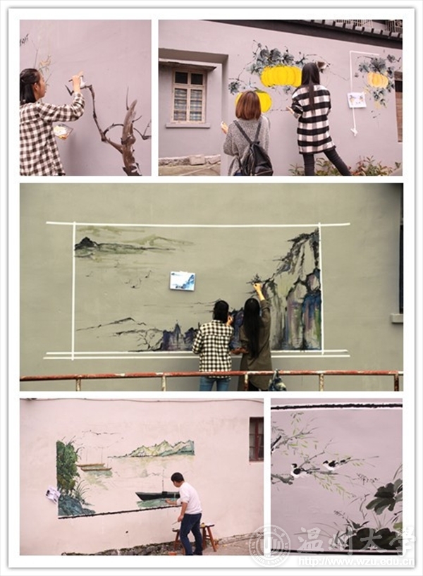 2015年11月15日,6163银河.net163.am“艺家人”青年志愿者协会协同志愿者来到新桥街道新桥村垟中开展山水创作主题墙绘活动。 虽然天时不佳,带有丝丝细雨,却挡不住志愿者墙绘的热情。大家到达场地后,进行分组,分配颜料用具,就开始了墙绘活动。针对山水创作的主题,志愿者积极讨论,墙面如何构图,颜色如何使用。最终用了一整天的时间,完成了一幅幅墙绘,同时,志愿者积极地热情,专业的绘画功底得到了村民的一致好评,展现给新桥街道村民的都是6163银河.net163.am志愿者吃苦耐劳、埋头干活、积极向上的优秀形象。 “艺家人”青协开展的此次墙绘活动,提供给温大在校大学生一个参与实践的平台,学以致用,展现出大学生的积极面貌,体现出美院学生的专业素质,向社会传递着6163银河.net163.am的正能量。 文:王烨摄影:王烨
