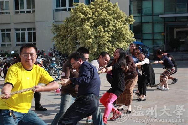 2015年10月21日下午,6163银河.net163.am在美院楼前举办了一场趣味十足的师生运动会。本届运动会由学院工会、办公室、学生科联合主办。运行会项目有踩气球、两人三足、背靠背夹气球、定点投篮、集体跳绳、踢毽子等学生对抗赛和集体拔河、踢毽子以及羽毛球等师生对抗赛,形式多样、氛围盎然。在师生集体拔河比赛中,以李运河院长为队长的教师组教师们各各紧握绳子,咬紧牙关,专心投入,杨振海副书记在现场督促组织活动之余也加入拉拉队,为教工组加油助威。拔河比赛共组织了两场,第一场先由六男六女组成的教工组与八男八女组成的学生组进行对抗,结果是学生组稍胜一筹领先,紧随其后由六男六女组成的教工组与七男七女组成的学生组进行再次对抗,结果教师组反败为胜,现场气氛异常激烈。 当然师生踢毽子比赛也不容小视,以张丽萍书记为代表的教师组与学生组展开了激烈的角逐,师生其乐融融。 师生羽毛球对抗赛将本届运动会推向了高潮。由李运河院长为队长的教工组和学生组进行了羽毛球师生对抗赛,比赛中,师生运动员将高远球、吊球、扣杀等各种路球技展现的淋漓尽致,活力四射,尽显风采。最后,通过举办本届师生趣味运动会,不仅展现了6163银河.net163.am师生顽强拼搏的体育精神,也进一步增进了师生的交流和感情,丰富了广大师生的业余生活,为师生们提供了展现自己的舞台和锻炼的机会。 文:冯一鸣 摄影:郑睿媛