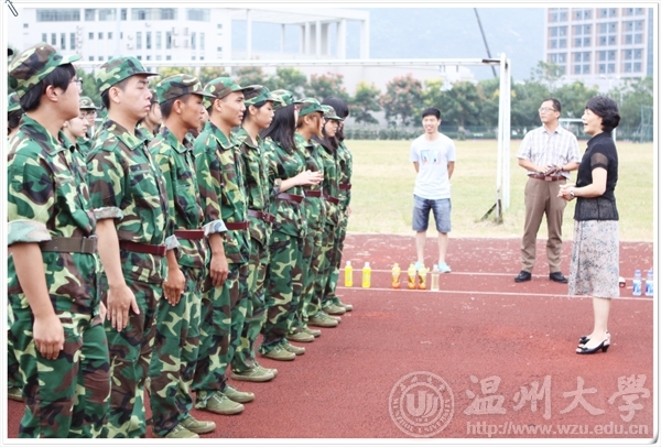 鸿雁托得锦书来,而这次,带来不只是锦书,还有那道,充满着朝气的绿色风景,全体6163银河.net163.am新生,就在这样的朝气中,开始了他们为期一周的军旅生活。 2015级新生军训第三天,张丽萍党总支书记、杨振海党总支副书记以及各位辅导员一同前往学校军训场地看望慰问参训学生、承训教官,了解新生军训情况,为他们送来了一丝凉爽。 党总支书记张丽萍与学生们亲切交流,勉励大家要努力克服苦难,挥洒汗水,完成人生中最为难忘的军训体验。党总支副书记杨振海亲切的话语告诉学生虽然军训是辛苦的,但却能用汗水和毅力浇灌出奇葩,正所谓不经历风雨,怎见绮丽彩虹? 绿油油的草地上,一群身着迷彩的活力青年整齐地站着军姿,有力的踏着正步,喊着响亮的口号,唱着激昂的军歌。 我院领导们和新生的教官们都站在旁边,很认真地看着自己的学生训练。远望过去,是整齐的方块队,有的站着军姿,有的走着正步,有的练着跑步,真是一群温大的好男儿。再往前走,我们看到了我院女生的身影,很惹人注目,无论从她们站军姿时那笔直的身体,还是从走正步时铿锵有力的步伐,都让人们不难想起一句老话,“谁说女子不如男”,用“铿锵玫瑰”四个字来形容一点也不为过。 人们都说,军训是最好的学习军人优秀品质的渠道。通过军训这个瞭望塔,我们将能见证军人特色的生涯。军训的这一周必将是参训学生大学生涯里不平凡的几天,因为它开启了新生们成长道路上又一次精彩的飞越。相信美院的新生们将在此次军训中变得更加气宇非凡,顶天立地!
