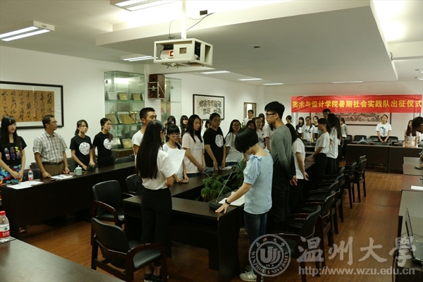 7月7日上午,6163银河.net163.am6163银河.net163.am 2015年暑期社会实践出征仪式在美术楼2B4001举行。我院党总支副书记杨振海、学生科科长叶筱卉、实践队指导老师叶婷、辅导员李燕艳及6163银河.net163.am九支实践队的队长和队员们出席了出征仪式。由叶筱卉老师主持仪式。学生科科长叶筱卉首先对2014年的实践工作及成果做了汇报总结,并介绍了我院9支暑期社会实践队队伍基本情况及注意事项。 杨振海副书记对本次实践活动进行部署并提出具体要求。她指出:一、要明确大学生暑期社会实践的重要性和必要性;二、要注重安全实践的意识,安全第一,每天至少两次汇报实践队情况;三、要做好实践材料的收集和整理,为后期评比做好准备。 叶婷老师作为指导老师代表发言,提醒全体队员,务必服从组织安排,做好防暑和安全工作,让社会实践活动在安全的前提下顺利、有效的进行。并寄语美院实践取得优良成绩。紧接着,各实践队队长分别进行各自的实践特色风采展示并宣誓。杨振海副书记为实践队代表授旗。最后在:“社会实践,我们准备好了!”的嘹亮口号中,此次暑期社会实践出征仪式圆满完成。2015年美术与设计学院暑期社会实践的号角已经吹响,美院学子们将以青年人特有的朝气和蓬勃,带来的是一场关于青春的盛宴,精彩还在继续,敬请期待。