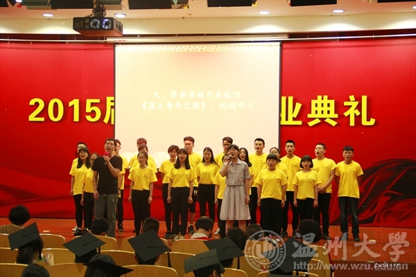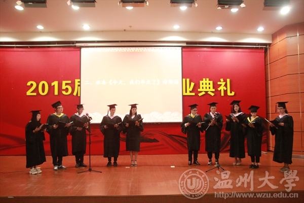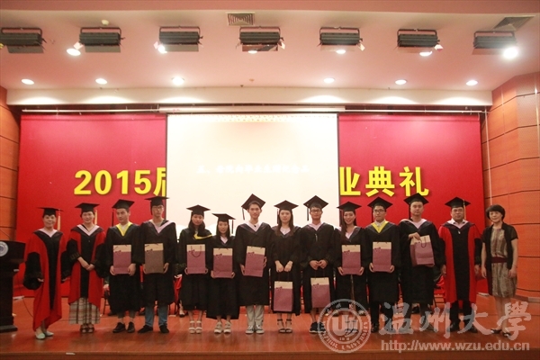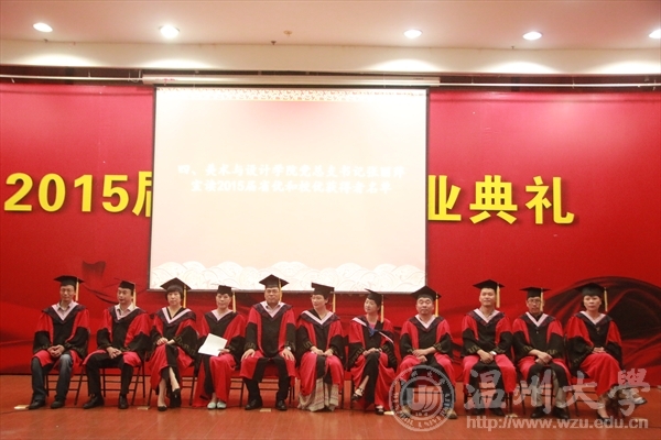 6月17日下午,6163银河.net163.am在岩松堂雁山厅隆重举行2015届本科生毕业典礼暨学位授予仪式。出席典礼仪式的领导有:我院校长蔡袁强、6163银河.net163.am院长李运河、党总支书记张丽萍、副院长谢子静、副院长王薇、办公室主任李丽、学生科科长叶如芳,美术系主任陈伟、设计系主任朱广宇、服装系主任陈明艳、教授舒湘鄂、教授魏静、教授邓国祥、教授李勋祥、教授蔡瑞蓉、博士张晓剑。此外,全体毕业班班主任、教师代表、全体毕业班同学参加了本次典礼。学院党总支副书记杨振海主持典礼。 首先,进入第一篇章《只如初见 恍如昨日》,主要有电子相册的播放、微电影《献给毕业的你》、以及诗歌朗诵《今天,我们毕业了》等内容。追忆四年,一幕幕场景、一段段音符,串连成一部画面与音乐交织的大学电影,播放着曾经的快乐与忧伤,记录着同学们曾经的青春与过往,也见证着拥有的友谊与深情! 随即进入第二篇章《青葱年代 凤凰花开》部分,学院副院长谢子静宣读了校优和院优毕业作品获得者名单,学院党总支书记张丽萍宣读了省优和校优毕业生获得者名单,院长李运河、书记张丽萍、美术系主任陈伟、设计系主任朱广宇、服装系主任陈明艳、教授舒湘鄂、教授魏静、教授邓国祥、教授李勋祥、教授蔡瑞蓉、博士张晓剑一一为他们颁奖、合影留念以资鼓励。 紧接着典礼进入第三篇章《亦师亦友 常忆相思》部分,学院为全体毕业生赠送纪念品——由美院学生原未手工皮具工作室制作的卡包。 为了更好的与毕业生保持联系,学院特意设立了各班级的校友联络员,学院副院长王薇宣读了名单,院长李运河、书记张丽萍为每位校友联络员颁发聘书。 接着,由省优毕业生11美本师范班马俪净代表2015届毕业生发言,她回忆了在温大的学习与生活经历,并表达了毕业生们即将离开的不舍和即将高飞的壮志。精彩的发言引起了在场毕业生们的共鸣,赢得了阵阵的掌声。 至此进入第四篇章《寄语明天情深道远》,院长李运河为2015届全体毕业生致辞!他祝愿大家以正确的世界观、人生观、价值观来指导自己的选择。志存高远,增长知识,锤炼意志,让青春在时代进步中焕发出绚丽的光彩,未来的自己,一定会感激现在努力的自己。 接着在校的学弟学妹代表为全体毕业生献唱《温大青年之歌》。 最后,典礼进入高潮部分,由我院校长蔡袁强为每位毕业生一一拨穗、颁发学位证书,并合影留念。这隆重的毕业典礼将成为每位学子心中最美好的回忆。祝福毕业生同学们明天更加辉煌灿烂!前程似锦!