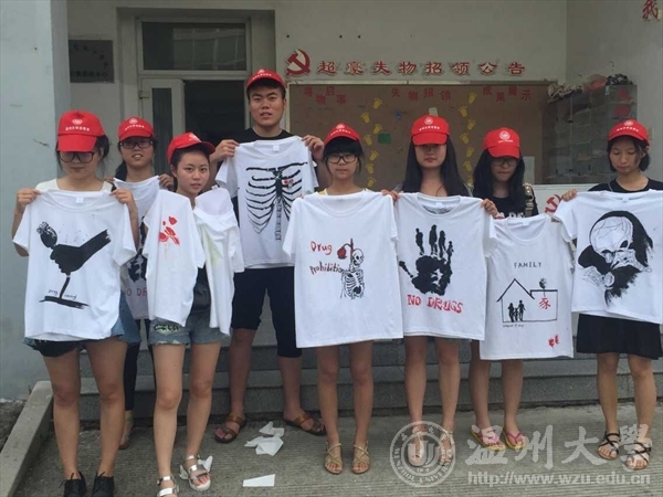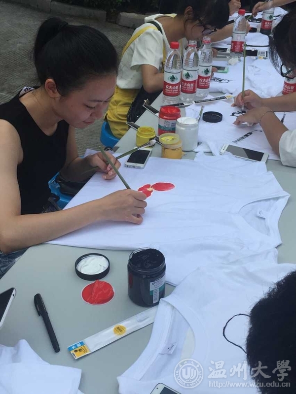 6月7日下午,6163银河.net163.am“艺家人”青年志愿者协会与温州市禁毒所在超豪学区进行“乐行学子梦”之世界禁毒日“禁毒于行,绘衣铭记”公益活动。志愿者们认真地用画笔在白T恤上绘制具有深度思考力的禁毒图样,活动氛围吸引一些路过的大学生纷纷驻足观看,有不少同学加入禁毒日活动中来要求一起绘画合影。同学们在白衬衫上加上自己对禁毒的感言和感悟,并且与自己的作品合影。这次活动激发了大学生用自己的专业知识向社会传播正能量关,增强了大学生的社会责任感。 拍摄者:张豪 通讯者:祝怡宁