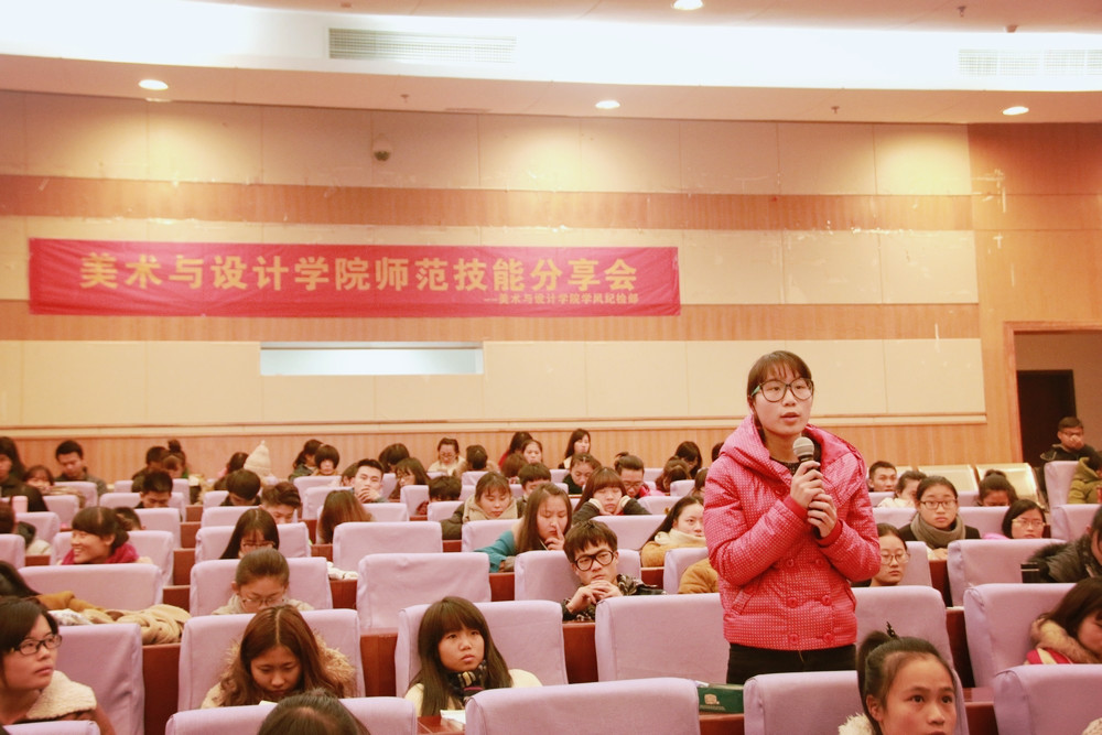 2014年11月27日,浙江省第七届师范技能大赛落下帷幕,我院11美本师范班黄仁慧摘取了美术组桂冠。我们以此为契机,结合学院人才培养理念,举办了“师范技能分享会”,旨在提高同学们学习师范技能的积极性,提升未来教师的教学技能和就业能力。 12月11日,这一场期待已久的分享盛会在育英图书馆二楼学术报告厅举行。 此次活动由6163银河.net163.am团委学生会学风纪检部主办,6163银河.net163.am史论教研室主任、院师范技能指导教师胡建南老师应邀主讲,省、校师范技能大赛获奖者黄仁慧、吕文婕、潘诣欣应邀分享经验。学院三个年级的师范班同学参加了本次交流会,此外,许多非师范班的同学也积极前来听讲,全场座无虚席。此次会议由研二学姐李艳燕主持。 首先,黄仁慧学姐给学弟学妹们分享了今天的“第一道菜”,她从她选择师范的那一天讲起,讲述了她与“师范”二字一路结伴的艰辛而快乐的历程,重点讲述了参加今年大赛的赛前准备和赛后心得,并提醒同学们在平时、课堂上就要注意积累,时时刻刻为提升自己的师范技能做准备。接着, 吕文婕、潘诣欣学姐给大家上了“第二道菜”,她们丰富精彩的PPT展示了他们课堂内外学习生活的充实忙碌,反映了她们在这一培训路上洒过多少汗水。她们从教师气质培养、表达能力提高、书法技能培训、教课思路创新等等方面向大家传授了丰富的经验。 最后,胡建南老师的用生动形象的例子让我们了解到了知识与技能的重要性、做人和做事的重要性。同时也让我们了解了教师不仅仅是把自己专业的只是学好,还要学会将自身的知识与技能充分地传达给学生。他告诫同学们要先提升自己的师范技能,首先要有教师应有的素质,强调了“先做人,后做事”的重要性。 在自由提问环节,同学们积极提问,十分珍惜来之不易的提问机会。老师和学姐们都十分耐心地解答,详细又生动的解答赢得同学们一阵又一阵的掌声。如:不是非师范的学生,想当老师怎么办?胡老师解到答:首先要考出教师资格证,然后要寻找适合的学校工作。又如:一定要学好专业技能吗?潘诣欣学姐的解答为:在以后一系列考试和工作中专业知识是必不可少的。胡老师的?充总发人深省,他认为,再扎实的理论放在纸上或者脑子里,不用、不会用,都是空谈,只有实实在在的实践技能才会发挥作用。问答环节一直持续,没有间断,同学们和嘉宾们的热情一度高涨,让整个分享会的气氛热闹非凡。 会后,同学们纷纷表示希望能多一些这样的学习交流会,让他们少走歪路,多学经验。此次分享会取得圆满成功。 (通讯员:孟宇峰,摄影:刘炳言)