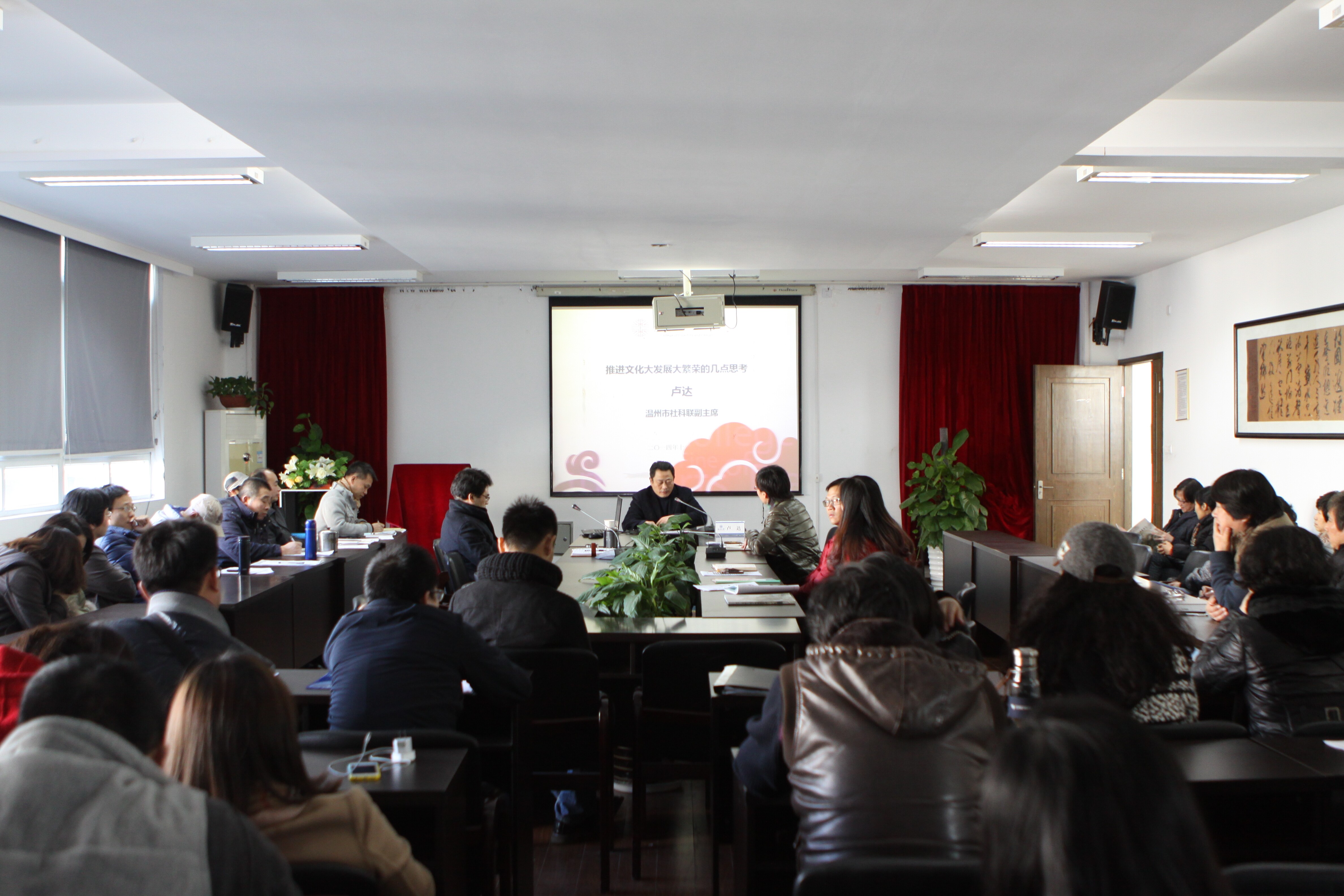 12月18日下午14:00,我院特邀温州市社科联副主席卢达为我院全体教职工做了主题为“推进文化大发展大繁荣的几点思考”的专题讲座。
