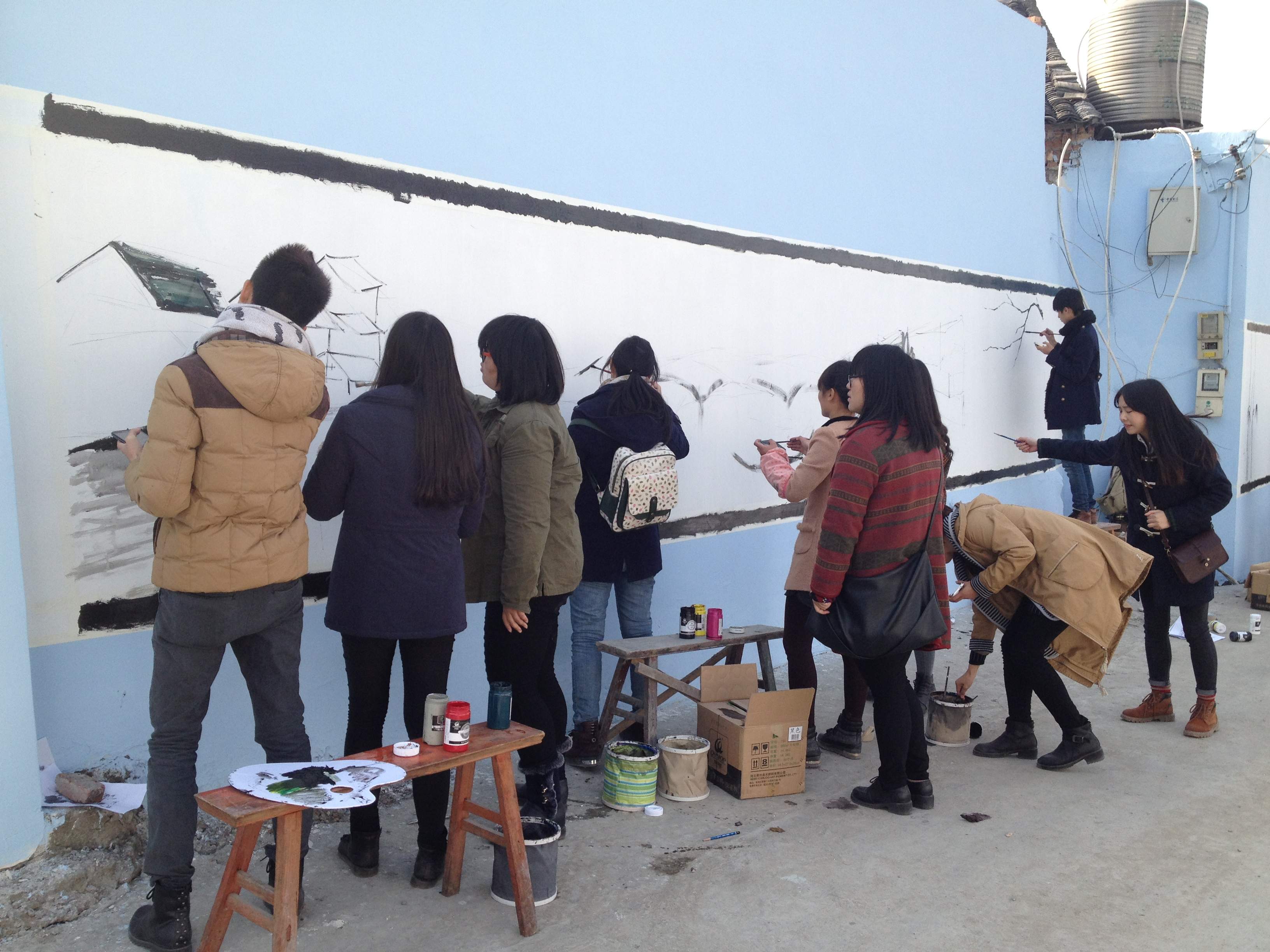 12月21日,阳光明媚,我院“艺家人”青年志愿者协会的志愿者们来到潘桥东边村参与“五水共治”墙绘活动。 上午7点40分,尽管冬日的早晨有些寒冷,但是志愿者们还是准时集合出发。到达活动地点以后,志愿者们进行了简短的分组,每个小组领完作画工具后,迅速地投入到墙绘中。有的小组画山水水墨画,有的小组画梅兰竹菊图,还有的小组画花鸟图,图案丰富多彩。虽然活动场地寒风呼啸,但志愿者们的热情如春日的阳光,温暖着,感染着每个人认真投入到墙绘中。为了保证作画的质量,每个小组的志愿者在画之前都进行了深入的讨论:如何画?如何调色?如何上色?他们每画一笔必定稍作调整,力求完美。也因为他们的努力,这次墙绘活动画上了圆满的句号。 我院“艺家人”青年志愿者协会通过这次墙绘活动宣传了“五水共治”方针,使更多人加入到治污水、防洪水、排涝水、保供水、抓节水的行列中去,为推进“五水共治”方针献出绵薄之力,与此同时也体现了现代大学生对政府政策的关注意识。 (通讯/摄影:祝怡宁)