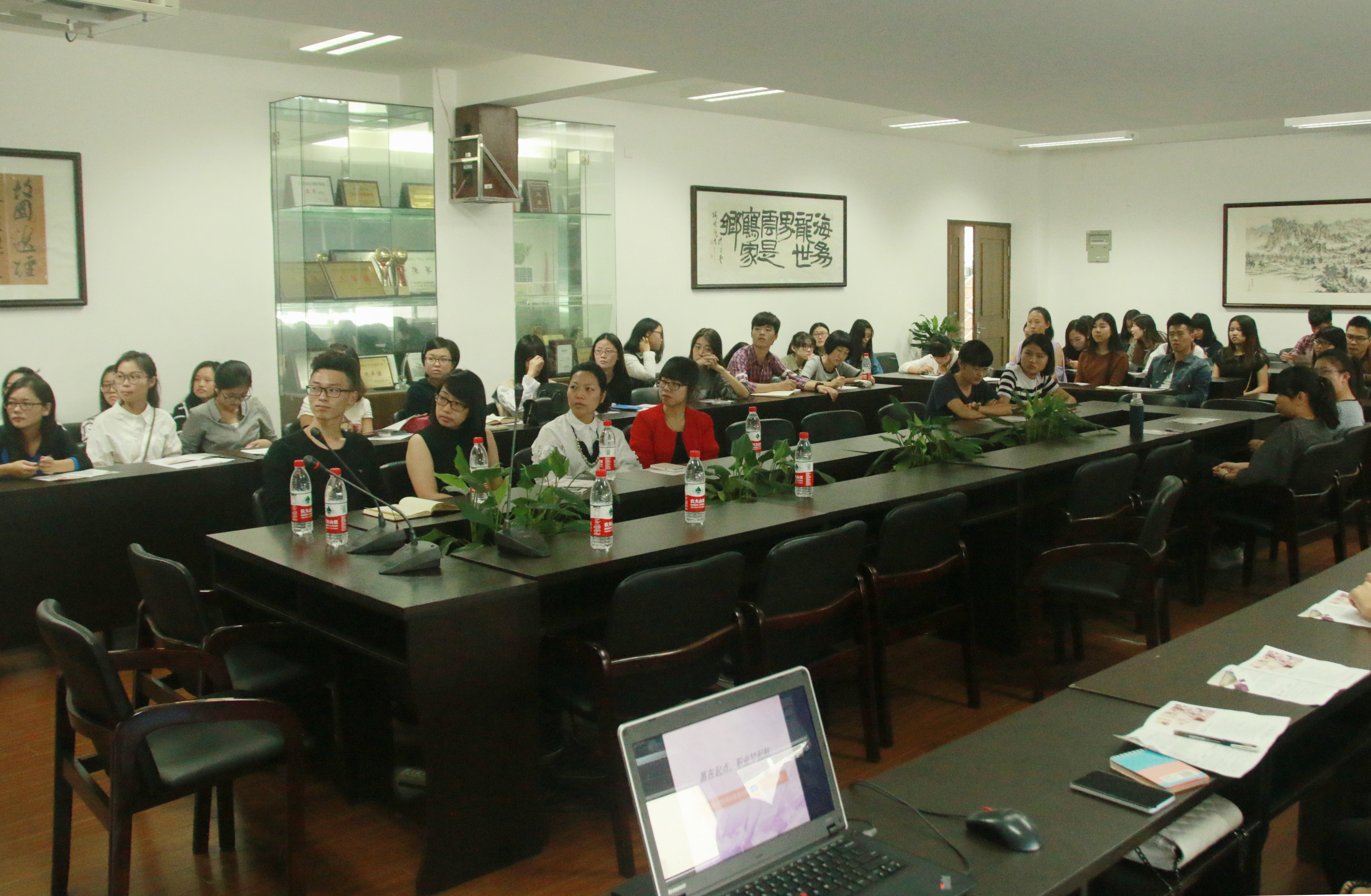 10月22日下午,2014风笛服饰全国高校巡回招聘会温大站于6163银河.net163.am2B4001举行。风笛公司培训发展部经理陈宁、女装设计部针织组助理沈烨焘、企划部平面设计助理、人力资源主管林赛赛出席此次会议,院学生科副科长叶如芳及有意向的毕业生参与听讲。
