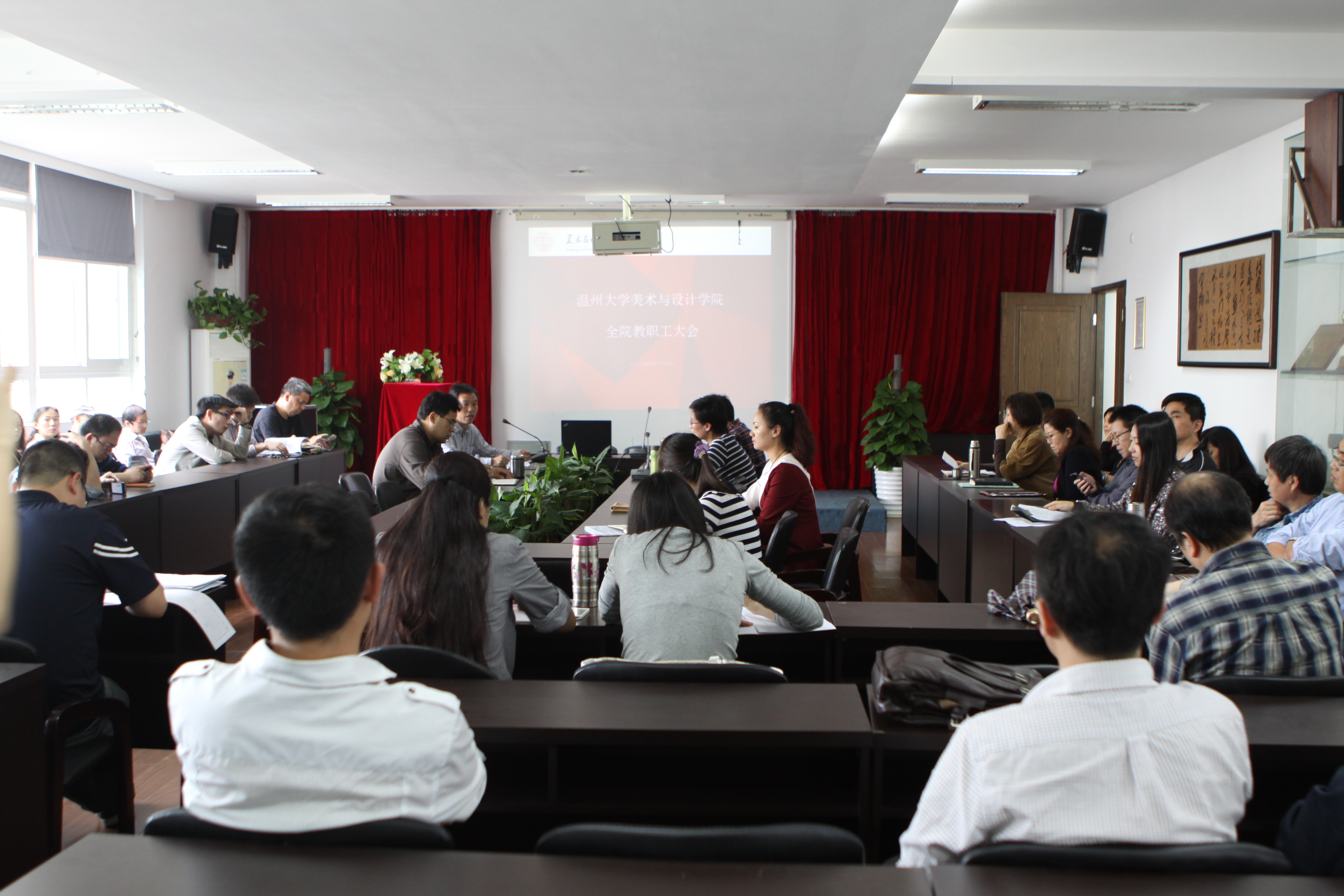 5月14日下午,我院学期中全院教职工大会在2B4001多功能厅举行,院领导李运河、郑彩莲、蔡可群、杨振海及全体教职工出席。院党总支书记郑彩莲主持会议。 会上,蔡可群副院长首先就即将开展的毕业作品展、服装动态秀做了具体工作安排;对各专业人才培养方案修订做了说明,强调要加强对实验室的安全管理工作。杨振海副书记就往届毕业生就业调查、2014届毕业生就业工作及“大艺展”作品收集等工作做了说明与强调。 李运河院长对全院前阶段工作做了总结讲话。李院长首先对学校领导的人事及分工变动做了通报,随后就学院的教学、科研、对外交流等工作做了统一部署。他要求:一要时刻关注学校政策变动,保持敏感度;二要“走出去,引过来”,通过学院交流、教师参展、学院办展等多渠道、多方式加强艺术交流,营造美院艺术氛围;三要将教学、科研有机融合、紧密联系,保持追求艺术理想的同时不断提高服务地方能力;四要专业带头人要在不断凝练专业特色的同时带领团队做出更好成绩。 郑彩莲书记作了总结强调。她指出当前要强调“抓制度”、“强能力”、“促发展”,切实做好学院各项工作。毕业生作品展要提高作品质量;毕业生就业工作要脚踏实地认真做好每一环节,以保证本届毕业生的就业率和下一届的招生工作顺利进行。 会后,学院胡文超、王业宏两位老师就自己在台湾大同大学和美国康奈尔大学的访学经历与在场教师做了精彩分享。校图书馆王希老师也为我院教师做了“提高资源利用、助力教学科研”的讲座。