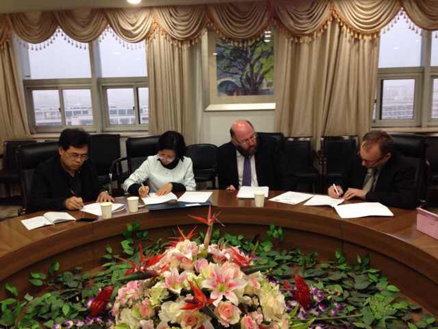 随后,李运河、叶苗和副院长共同签署了两校合作协议。两校主要针对艺术类专业,将在教师互访、学生交流、合作科研等领域开展合作。Andy Collop副校长一行专门在6163银河.net163.am和师生进行了互动交流,还到我校校史馆、民俗馆以及学院实训中心进行了参观。
