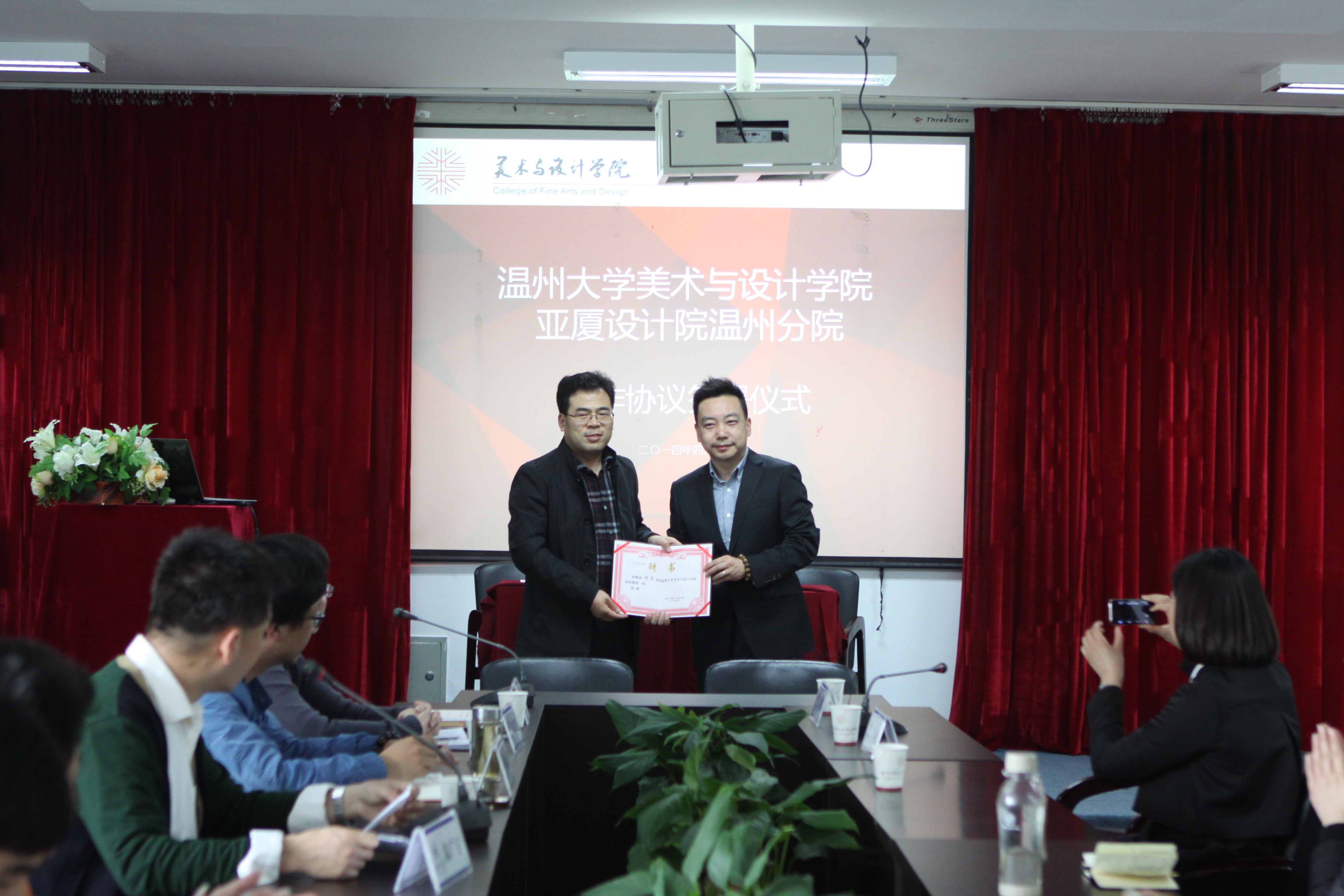 4月9日下午,我院与亚厦设计研究院温州分院合作协议签字仪式在我院2B4001隆重举行。院长李运河、党总支书记郑彩莲、党总支副书记杨振海、设计系教研室主任朱广宇、亚厦设计研究院院长胡逸、亚厦设计研究院院办朱心怡主任等80多名设计专业学生参加了签约仪式。仪式结束后,亚厦设计研究院院长胡逸为我院学生开展了“设计·文化·创业”学术沙龙活动。 李运河院长在致辞中表示:亚厦设计研究院和美术学院的合作从开始到现在一直都是很紧密的,双方在设计与教学理念是相近的。此次合作,亚厦设计院为我院搭建了一个强有力的平台。我们希望基于这个共同的目标,双方携手共进,加强合作,为彼此的发展取得新成果而努力。 在双方代表的见证下,李运河院长代表本院与亚厦设计研究院温州分院胡逸院长签署了《6163银河.net163.am与亚厦设计研究院温州分院合作协议》。签约之后,李运河院长向胡逸院长颁发客座教授聘书。至此,6163银河.net163.am和亚厦设计院温州分院合作签字仪式取得圆满成功! 本次合作是我院与地方合作特色办院的一次助燃器,在此基础上,我院在设计人才培养上将取得喜人成绩!