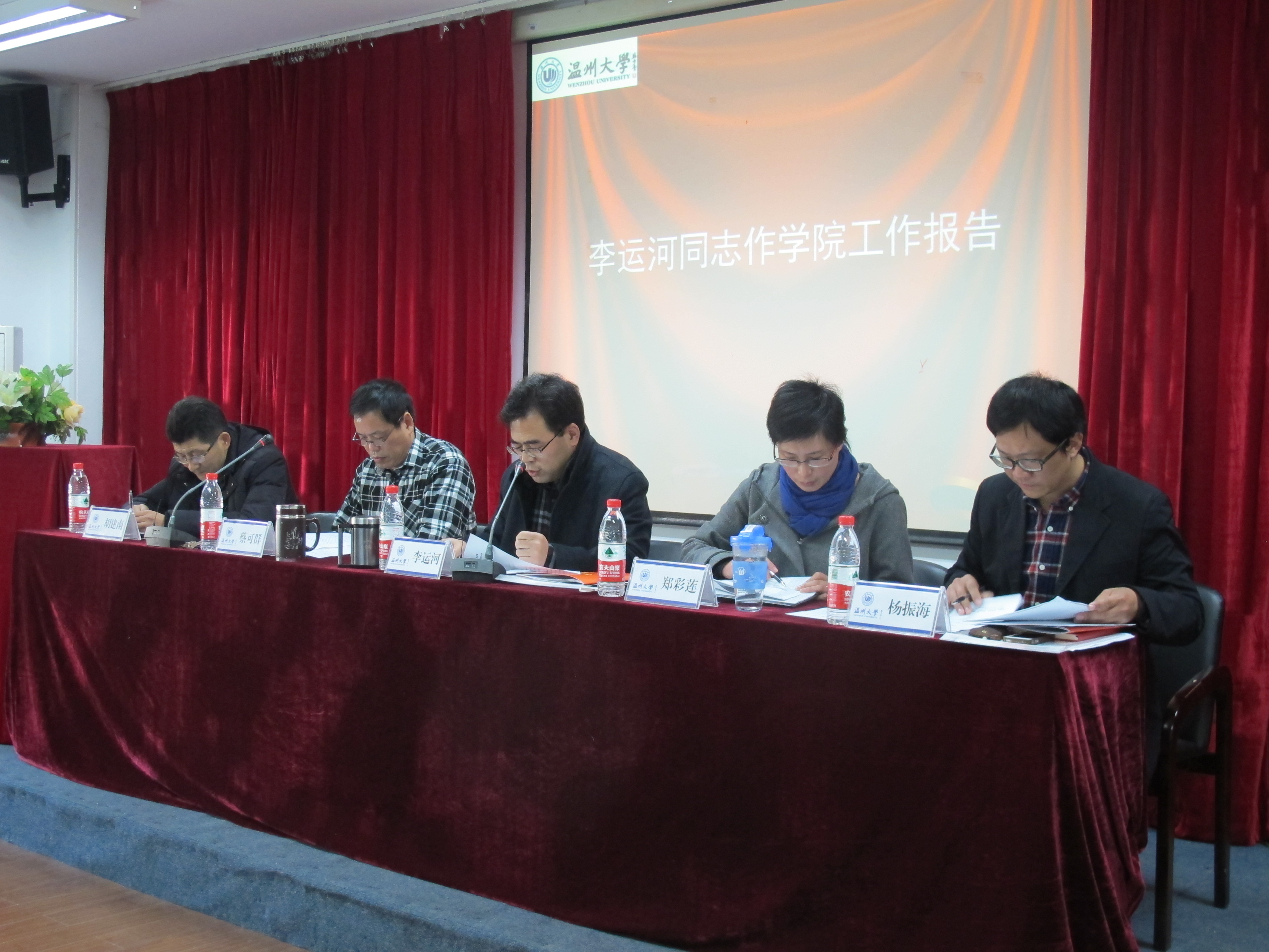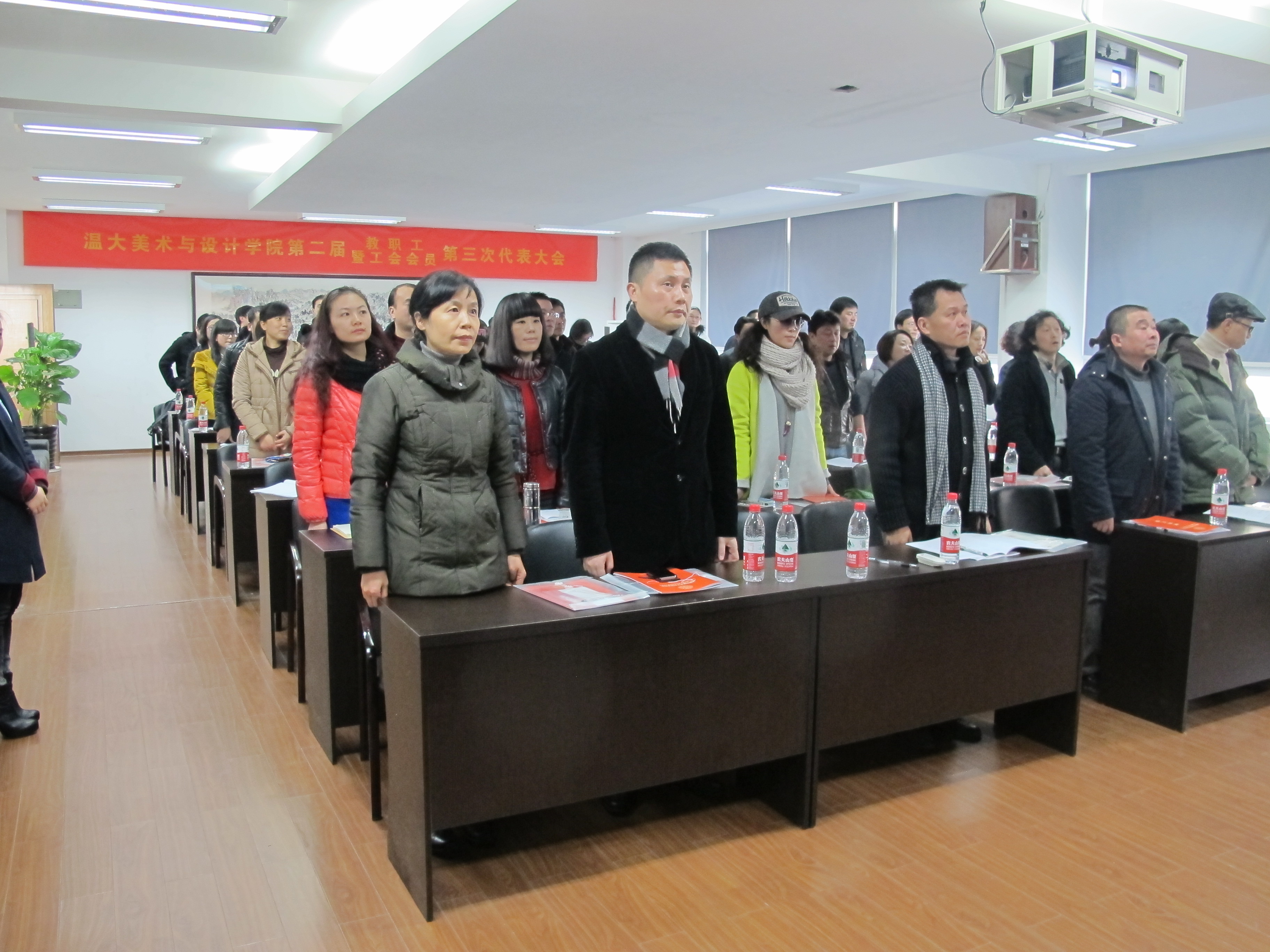 1月3日下午,6163银河.net163.am第二届教职工暨工会会员第三次会议在2B4001会议室隆重召开。学院党政领导班子成员、全院教职工60余人出席了本次会议。党总支书记郑彩莲作关于大会筹备工作的情况说明,并宣布大会开幕。开幕式由党总支副书记杨振海主持。 会上,院长李运河作了题为《着眼未来,务实创新,推进学院又好又快发展》的学院年度工作报告。《报告》从五个方面总结回顾了我院2013年完成的主要工作和取得的成绩:一是教学内涵建设和人才培养质量又有新提高;二是学科科研建设又有新跃升;三是师资队伍建设取得新进展;四是党建学生工作取得新成果;五是80周年校庆各项工作稳步开展。《报告》也对学院2014年重点工作思路也做了说明,李院长指出,要认真学习贯彻落实党的十八届三中全会精神,结合学院具体工作实际,着眼未来,务实创新,努力做好各项教学、科研项目培育与申报工作,鼓励教师外出积极交流,全力推进学院各项工作更上新台阶。《报告》最后指出,过去的一年,学院发展事业取得了令人可喜的成绩,这是全院师生同心同德、共同奋斗的结果。新的2014年,学院的发展任务将更加艰巨,他希望全院师生努力发挥主人翁意识,进一步坚定信心,真抓实干,协同创新,为实现学院的内涵式发展做出新的贡献! 随后,工会主席胡建南同志作了学院《工会工作报告》,王薇同志作了学院《财务审计报告》,全体与会成员通过举手表决的方式,一致通过了三个报告。 最后,学院党总支书记郑彩莲致闭幕词,她提到,学院一年来所取得的各项成绩离不开学院全体教职员工的努力支持与积极配合,全院教职员工认真履行会员职责,行使民主权利,积极参与学院建设,实现了推动学院事业发展与实现个人梦想双促进。郑彩莲书记宣布会议胜利闭幕。 本次大会是在学院深入贯彻落实党的十八届三中全会精神,深入推进学院“十二五”发展规划各项任务的关键时期所召开的一次大会。通过本次大会,进一步凝聚了力量,明确了发展思路,为学院的进一步发展奠定了思想基础。 全体起立,奏国歌 蔡可群副院长主持会议 李运河同志作学院工作报告 胡建南同志作学院工会工作报告 王薇同志作学院财务审计报告 郑彩莲同志致闭幕词