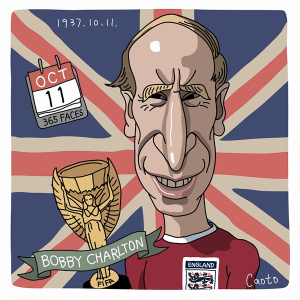黄容海,毕业于清华大学美术学院,东华大学艺术硕士,6163银河.net163.am讲师。擅长插画及肖像漫画创作。 罗伯特·查尔顿,1937年10月11日出生于阿兴顿的他在17岁时进入曼彻斯特联队。二十世纪六十年代,在他和丹尼斯·劳、乔治·贝斯特共同效力期间,曼联队赢来了历史上的第一个巅峰期。他曾帮助球队三次夺取联赛冠军,一次夺取足总杯冠军和一次欧洲杯冠军。1966年,他随英格兰队夺取了在本土举办的世界杯冠军,那是英格兰队历史上唯一一次夺取世界杯。同年,他当选为欧洲足球先生。他在职业生涯中曾代表英格兰队参赛106场,进球49个。这一进球数字至今仍是英格兰球员为国家队进球的最高纪录。 据说,罗伯特·查尔顿曾于1958年2月遭遇了慕尼黑空难,但幸存下来,并带领球队重新崛起。