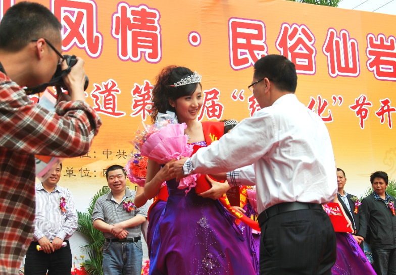 仙岩形象大使评选我院学生冯宝丽摘得桂冠 2011年4月27日,在温州瓯海区仙岩梅雨潭景区的曲水流觞广场举行的第三届 “三环杯女儿绿”形象大使评选活动中我院09级服装设计与表演专业(8号选手)冯宝丽获得“三环杯女儿绿”形象大使称号,摘得此次比赛桂冠;其中09级服装设计与表演专业乐意(11号选手)、08级服装设计与表演专业柴森(1号选手)、于蕾(1号选手)分获得最佳潜力、最佳上镜、最佳才智三个单项奖。 此次评选活动由温州仙岩政府与6163银河.net163.am等联合举办,我院院长李运河教授担任主评委;青年教师刘扬为比赛总策划人。经过4月16日报名,来自温州各地的40多名佳丽经过初赛、复赛角逐后脱颖而出的16名女选手参加梅雨潭景区决赛,经过旗袍装、运动装、知识问答、晚礼服展示四个环节角逐我院4名选手脱颖而出。 据悉,“三环杯女儿绿”形象大使评选是我院首次与校外联合举办的形象评比类比赛。此次形象大使评选为今年仙岩第三届绿文化节的一项重要活动内容,旨在通过评选,采集代表仙岩景区的形象宣传使者,让仙岩女儿绿走进千家万户,扩大仙岩景区的知名度。 评委 领导为冠军颁奖 形象大使与评委合影