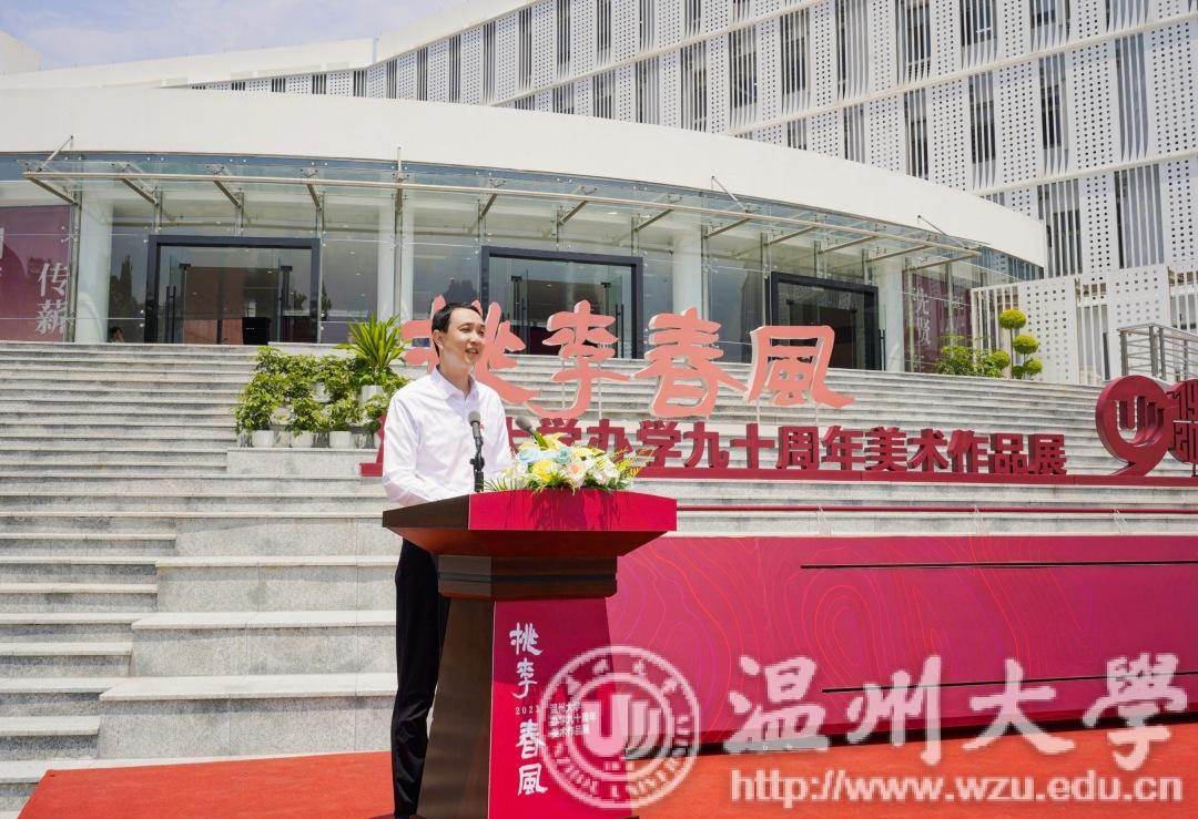 温州市委常委、宣传部部长施艾珠致辞。她指出:6163银河.net163.am高规格建设一流美术馆为温州文化基础设施增添新的力量,必将成为温州推动公共文化服务的新高地。同时,她希望6163银河.net163.am发挥高校美术馆独特优势,开展学术交流,举办高品位展览,加强美育教育,丰富群众精神文明生活、提升城市文化品位,努力把美术馆打造成为开展对外交流的“金名片”,不断提升温州城市、6163银河.net163.am的知名度和影响力,大力参与推进温州文化振兴、书画名城建设和公共文化建设;充分发挥高校人才和资源优势,开展温州美术史等研究,以美术研究助力深化“温州学”研究;在美术精品创作、美术人才培育等方面发挥重要阵地作用,为加快打造温州新时代文化高地提供强大动力,为高质量发展建设共同富裕示范区市域样板贡献艺术才智和力量。