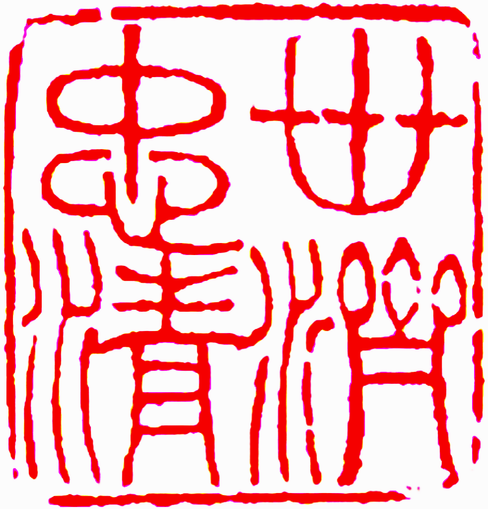 中間竪畫上的短横高于兩邊竪畫上的短横,很可能就是印文形所從出處。《説文》指出“三十年爲一世,从而曳長之”,許慎以爲“世”字從“卅”,、、三形或是根據《説文》篆文和形改寫而來,將三竪畫下部連爲一體,已有訛誤傾嚮。鄧石如、王福庵、鄧散木等篆刻家,亦有將“世”刻作“丗”形,如所示諸印(圖2—圖5):