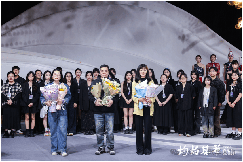 本次发布会邀请浙江理工大学服装学院教授戚孟勇先生,为学生们的作品进行现场点评。随后,学生们为指导教师代表、协办单位代表、助演嘉宾献花致意。