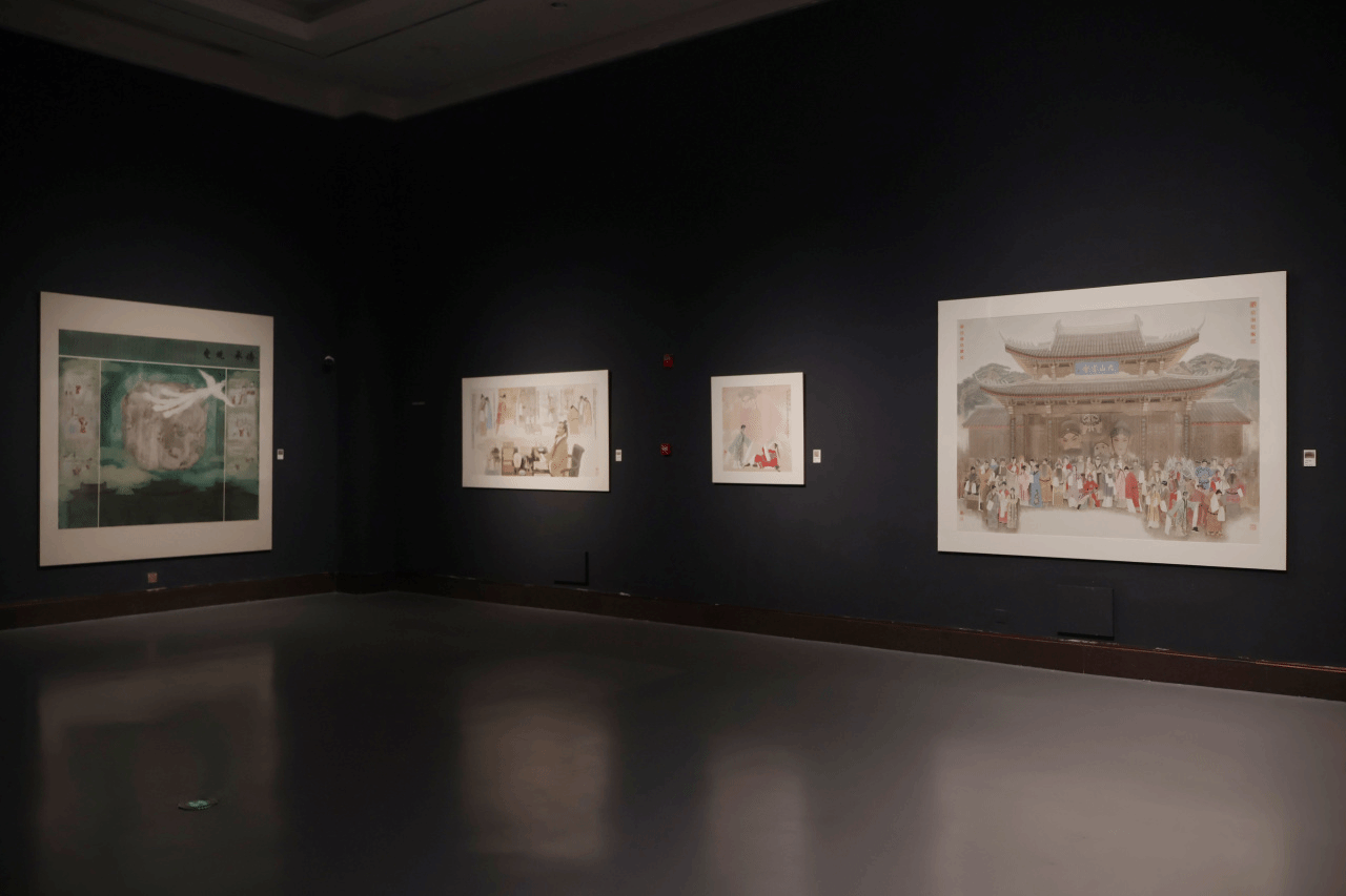 展区中,“研究+创作+传播”的立体化体系清晰可见。针对年轻创作者对南戏的陌生感,策展团队特邀国家一级美术师戴宏海,南戏研究学者、博士生导师俞为民,国家一级编剧张思聪组成学术顾问团,通过剧本解读、实景演出观摩等活动,让画家们在唱念做打间直观感受角色情感脉络。
