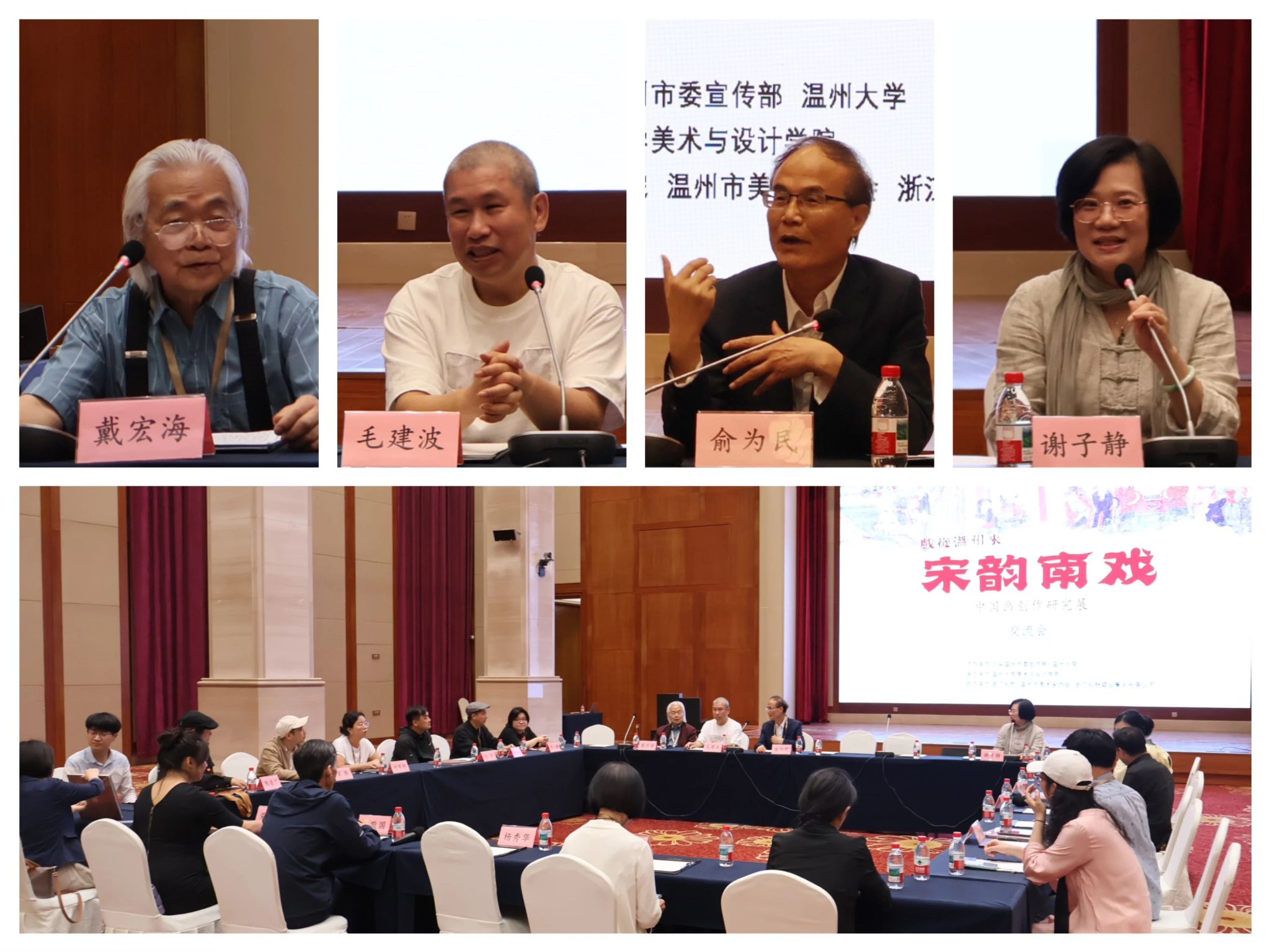启动仪式后,在浙江展览馆三楼会议厅举办“宋韵南戏中国画创作交流会”。俞为民、戴宏海、谢子静、彭德、李砚、罗汉、楼晓勉、罗小珊、鲍海斌、陈凌广、梁腾等专家学者围绕“戏从温州来”彰显文化自信、南戏起源与传播、戏曲与绘画跨界融合、温州精神等议题展开深入讨论,交流会由毛建波主持。